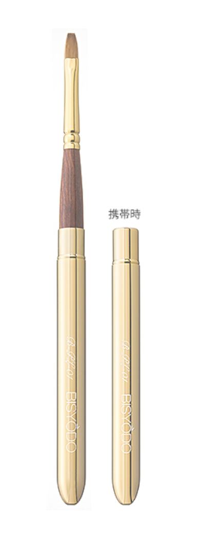コリンスキーはコシが強く滑らかでリップブラシに最適です。平型の筆先は輪郭を取りやすく、スッキリとしたリップラインを描くことが出来ます。ゴールドの輝きが贅沢な逸品です。